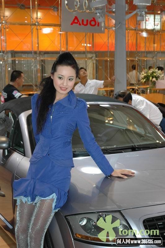 奧迪TT車(chē)展模特的漂亮閃亮黑絲