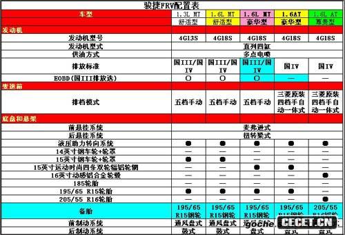 駿捷FRV匹配了同樣來(lái)自三菱1.3L和1.6L兩款發(fā)動(dòng)機,雖然沒(méi)有過(guò)多可圈可點(diǎn),但廣泛的應用也保證了其可靠性。FRV主打的應該是1.6L排量版本,而竟有的一款1.3L車(chē)型更大意義是象征FRV車(chē)型的較低入門(mén)門(mén)檻,用于吸引消費者。在車(chē)型配置上,FRV做得相當細化,僅僅從輪胎一項就可以看出。