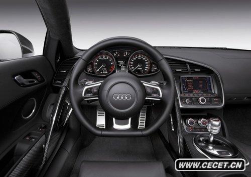 尤其精致的內部做工更賦予奧迪R8 5.2 FSI quattro與眾不同的豪華氣質(zhì)——弧形設計的儀表臺布局既彰顯出賽車(chē)風(fēng)格又非常適合舒適駕駛;細心挑選的內飾材料被一絲不茍地縫制在方向盤(pán)、儀表臺或車(chē)門(mén)板上;拋光處理的鋁質(zhì)R tronic換擋桿、方向盤(pán)換擋撥片和油門(mén)剎車(chē)踏板則在傳承賽車(chē)血統的同時(shí)展現了奧迪高性能車(chē)的風(fēng)范。