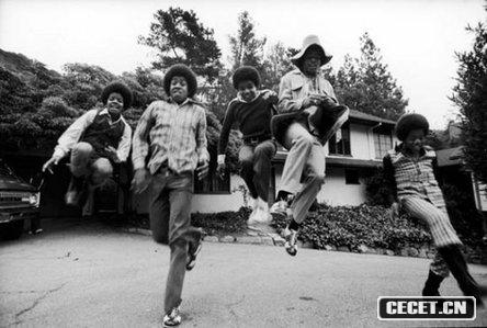 1968年,10歲大的邁克爾胖乎乎的,兩旁站的是他四個(gè)哥哥:(中排左至右)蒂托(Tito),馬龍(Marlon),杰麥恩(Jermaine)和(后排)杰基(Jackie)。他們在兩年前剛組建了“杰克遜五兄弟(JacksonFive)演唱組”。那時(shí)候對于邁克爾和他的家庭來(lái)說(shuō),世界的確是黑白的。