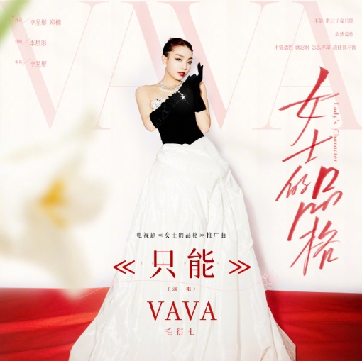 傳遞獨立勇敢、保持自我、奔赴熱愛(ài)的女性精神,是VaVa毛衍七音樂(lè )作品的鮮明特質(zhì)。由萬(wàn)茜、劉敏濤、邢菲領(lǐng)銜主演,白客特別主演,湖南衛視、芒果TV雙平臺熱播都市生活輕喜劇《女士的品格》,立足于“職場(chǎng)女性”話(huà)題,通過(guò)70后、80后和90后三代都市女性視角,詮釋現代都市女性的生存品格。VaVa毛衍七為該劇獻唱推廣曲OST《只能》,“沒(méi)人能輕易否決我的篤定”《只能》唱出堅韌的內心力量,也唱出女性的溫柔強大。