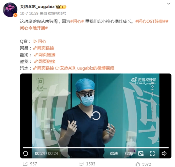 作為影視劇OST,說(shuō)唱音樂(lè )在敘事和抒情上更有優(yōu)勢,不僅具有充沛的情感情緒表達,在傳遞影片核心主題上也顯現出極強的精準度和力量感。近期由趙又廷、毛曉彤主演的都市醫療情感劇《問(wèn)心》,也由艾熱演繹同名主題曲,“讓我的初心延續希望,再深的黑夜也要去前往”“讓我的初心守住光亮,記得這趟旅途你從未獨闖,我會(huì )陪在你身旁,穿過(guò)人間的跌宕”,艾熱有穿透力的聲音唱出了內心的溫度與力量,高燃治愈。