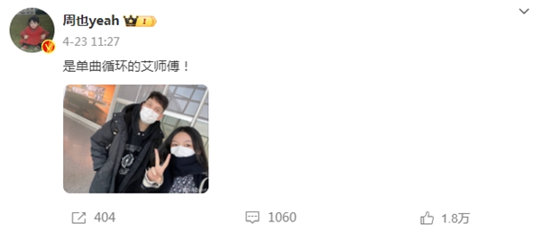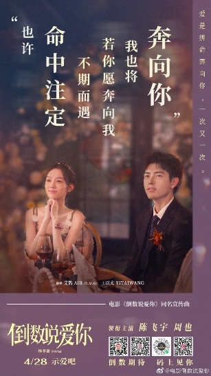 曾演繹“婚禮三部曲”的艾熱、王以太還為陳飛宇、周也主演愛(ài)情電影《倒數說(shuō)愛(ài)你》創(chuàng )作演唱同名宣傳曲MV,周也與艾熱合影并發(fā)布微博“是單曲循環(huán)的艾師傅”。