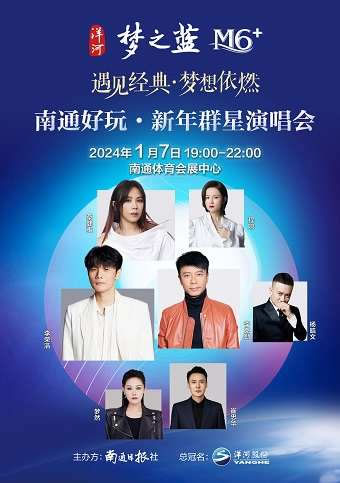 夢(mèng)之藍M6+ 南通好玩·新年群星演唱會(huì ),將于2024年1月7日19:00-22:00在南通體育會(huì )展中心燃情開(kāi)唱。