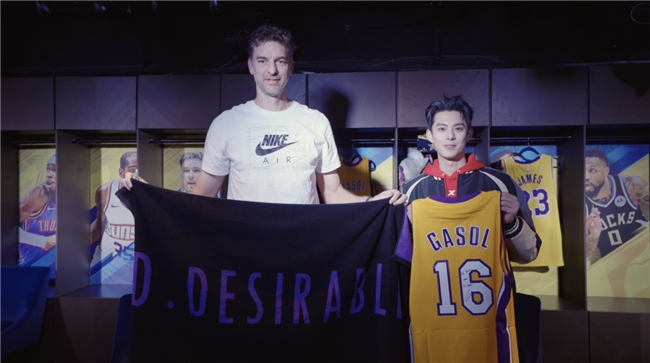 為了迎接王鶴棣的到來(lái),NBA誠意滿(mǎn)滿(mǎn),提前布置了一個(gè)球員更衣柜,里面放置著(zhù)印有王鶴棣昵稱(chēng)“Dylan”的湖人23號球衣。湖人名宿加索爾親自將這件球衣作為禮物贈送給王鶴棣,王鶴棣則從龍年紅包墻上選擇一個(gè)紅包解鎖新春驚喜禮物,然后將一個(gè)NBA龍年公仔和紅包回贈給了加索爾。在農歷春節的喜慶氛圍中,中國知名藝人與NBA傳奇球星的跨界聯(lián)動(dòng),將節日的氛圍烘托得更加溫馨。