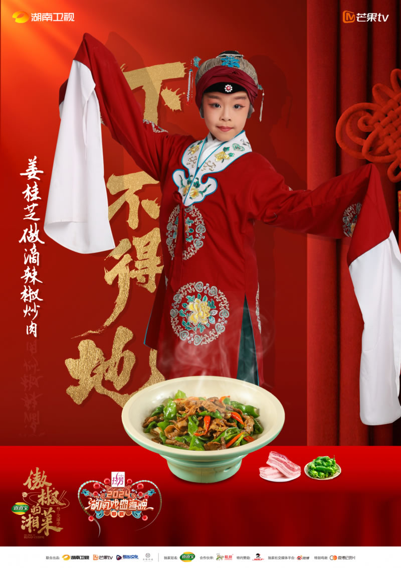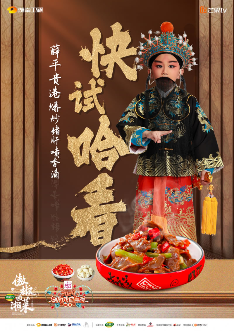 其三,乘勢國潮,深植戲曲文化基因。近幾年來(lái),隨著(zhù)國朝文化盛行,戲曲類(lèi)春節晚會(huì )也備受關(guān)注。而道道全在《傲嬌的湘菜》第三季節目的品牌傳播裂變中,聯(lián)名了春晚戲曲——京劇,并根據聯(lián)名的黃忠、包拯、雙陽(yáng)公主、姜桂芝等京劇角色,推出與其對應的小炒黃牛肉、臭干子、扣肉、辣椒炒肉等9道特色湘菜,讓品牌實(shí)現產(chǎn)品文創(chuàng )裂變,從而破圈觸及更多的客群。