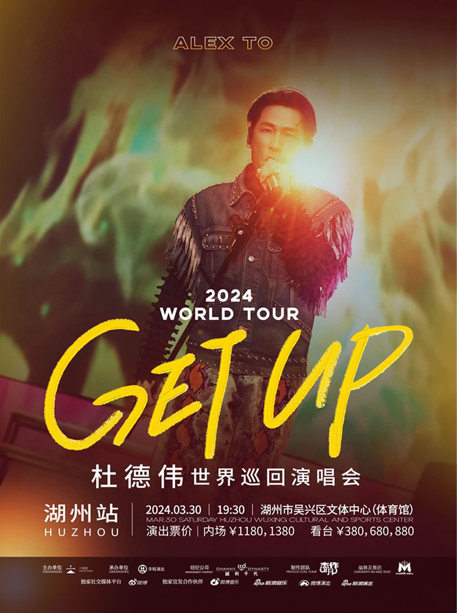 3月30日星期六,Alex To 杜德偉「Get Up起來(lái)」世界巡回演唱湖州站將在湖州吳興區文體中心體育館舉行。一場(chǎng)重啟我們青春記憶的音樂(lè )旅程即將驚喜展開(kāi)!
