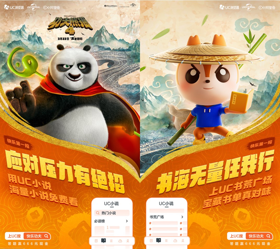 近日,由夢(mèng)工廠(chǎng)出品的動(dòng)畫(huà)大片《功夫熊貓4》再次席卷全球銀幕,掀起了一股功夫狂潮。伴隨著(zhù)影片上映,UC瀏覽器近日攜手《功夫熊貓4》,開(kāi)展了以“快樂(lè )功夫,UC有絕招”為主題的活動(dòng),將功夫熊貓與UC瀏覽器的實(shí)用特色巧妙融合,為用戶(hù)帶來(lái)“快樂(lè )三連招”。