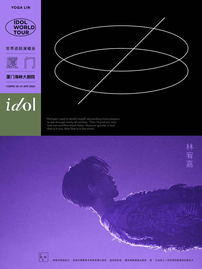 2024年4月20日、21日,讓我們相約廈門(mén)海峽大劇院,和林宥嘉一起,在idol世界巡演中一起哭一起笑,一起感受愛(ài)的力量,一起步入這座充滿(mǎn)真心與真意的移動(dòng)美術(shù)館。