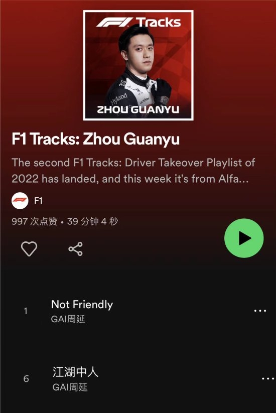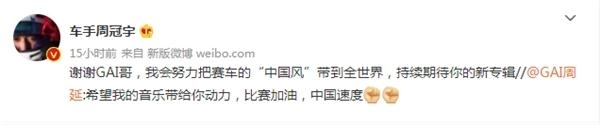 在那個(gè)夏天關(guān)注并愛(ài)上說(shuō)唱,GAI是自己支持的人,感覺(jué)他整個(gè)歌詞很real,歌曲很中國風(fēng),中國風(fēng)也是自己一直在F1賽道上想帶給全世界人民的。GAI周延也第一時(shí)間在微博與周冠宇隔空互動(dòng)“希望我的音樂(lè )帶給你動(dòng)力,比賽加油,中國速度”。周冠宇還不忘發(fā)起在線(xiàn)催歌“謝謝GAI哥,我會(huì )努力把賽車(chē)的“中國風(fēng)”帶到全世界,持續期待你的新專(zhuān)輯”。