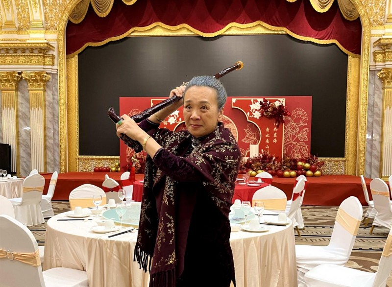 提愛(ài)民在拍攝短劇《陸小姐攤牌了》的劇照。提愛(ài)民飾演祝老夫人。