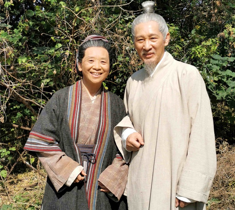 提愛(ài)民與老戲骨王勁松老師合照。王勁松飾演老年蘇東坡,提愛(ài)民飾演春夢(mèng)婆。