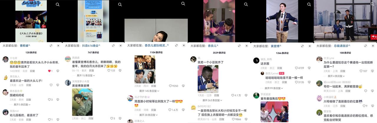 許君聰、曹桐睿的真人版《大頭兒子小頭爸爸》,引發(fā)90后集體童年記憶,一起回到快樂(lè )童年;王櫟鑫創(chuàng )新演繹激勵了無(wú)數人的熱血動(dòng)漫《海賊王》,熱血“老男孩”圓夢(mèng)舞臺,尋找傳說(shuō)中的One Piece;藍多多、古麗時(shí)隔多年在抖音616快樂(lè )節晚會(huì )同框,讓人夢(mèng)回在電視機前看《星際精靈藍多多》的恬靜時(shí)光,原劇主創(chuàng )現身視頻評論區驚喜互動(dòng),粉絲曬圖高呼“童年最強售后”!趙奕歡、紀凌塵、張萌、王鶴潤等演員聯(lián)合助演嘉賓上演素描喜劇,演繹生活的不同面,無(wú)死角觸達你的快樂(lè )開(kāi)關(guān)。