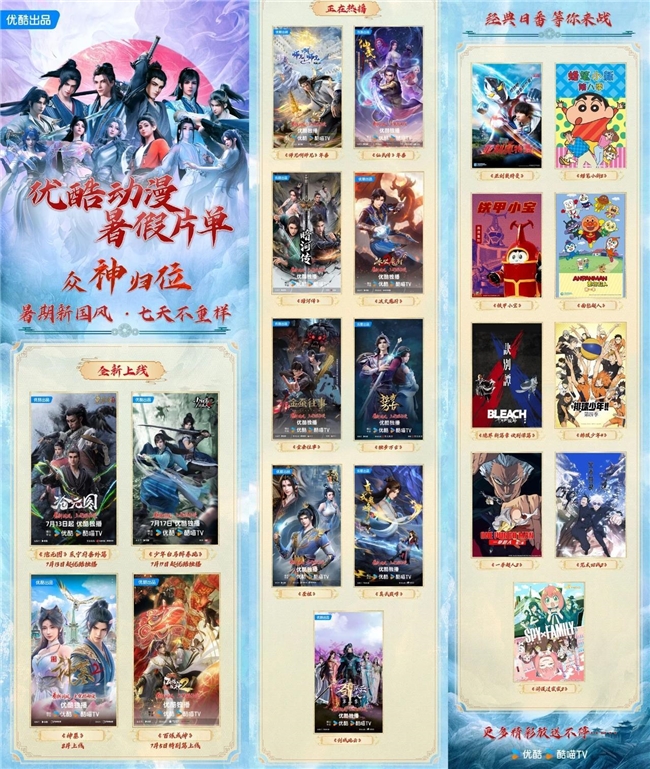 夏風(fēng)熏熏,優(yōu)酷動(dòng)漫特赴“暑假之約”,于7月4日釋出其暑假動(dòng)漫片單。此次暑假動(dòng)漫片單,不僅有已經(jīng)開(kāi)播的《滄元圖》東寧府番外篇、《少年白馬醉春風(fēng)2》《百煉成神》特別篇、《神墓2》等高口碑IP續集陸續定檔,而且有《師兄啊師兄》年番、《仙武傳》《暗河傳》等新國風(fēng)動(dòng)漫持續霸屏,還有《亞刻奧特曼》《蠟筆小新8》《鐵甲小寶》等經(jīng)典日番回歸。優(yōu)酷動(dòng)漫一周七日不重樣的設定,堪稱(chēng)“眾神歸位”的暑期檔布局,無(wú)疑要燃爆整個(gè)夏天!
