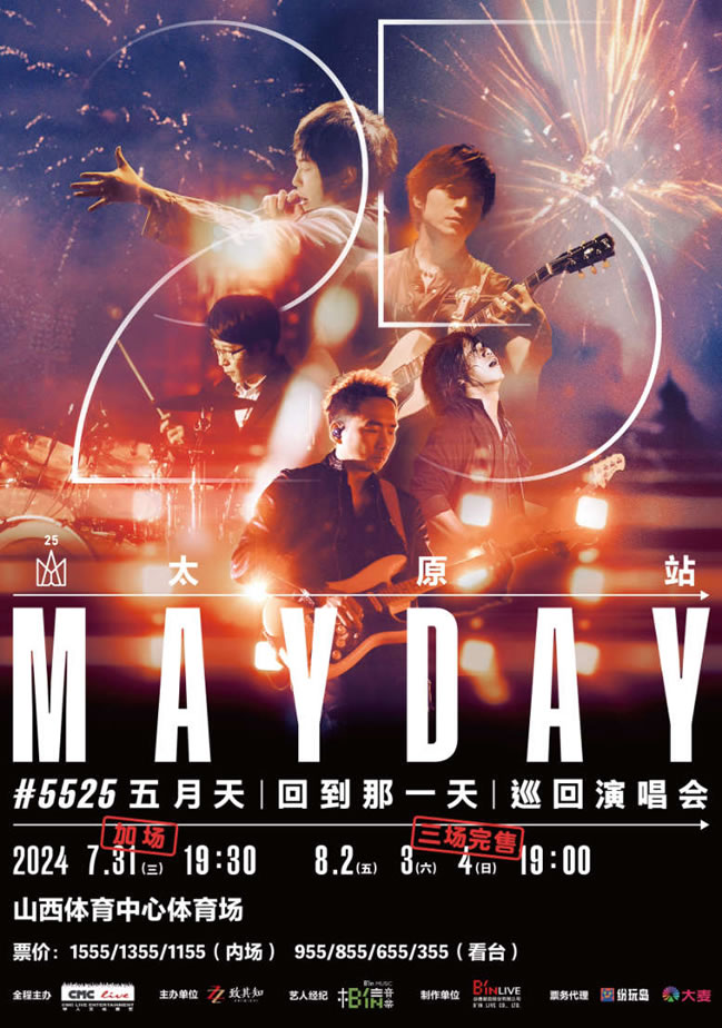有你的每一天,天天都是五月天!無(wú)論什么都不能阻擋盛夏太原與五月天的重聚!CMC Live與相信音樂(lè )共同宣布五月天于2024年8月2、3、4日,3場(chǎng)盛舉帶來(lái)新主題巡演「MAYDAY #5525 LIVE TOUR 五月天 [ 回到那一天 ] 25周年巡回演唱會(huì )」,于山西體育中心體育場(chǎng),搭乘5525時(shí)光機,有你有我回到那一天。5525太原站加碼升級,精彩重現喵星人大飛球、「MAYDAY EXPRESS」巴士環(huán)場(chǎng),搭配盛夏星空,精致舞美,共同筑起無(wú)限絕美五月天音樂(lè )宇宙。
