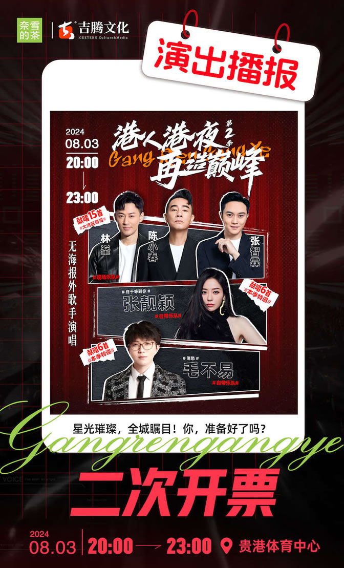 2024年是線(xiàn)下觀(guān)演需求井噴,演唱會(huì )遍地開(kāi)花的一年,8月份的貴港人,必將讓無(wú)數人羨慕,貴港港人港夜港樂(lè )大型演唱會(huì ),我們不見(jiàn)不散。
