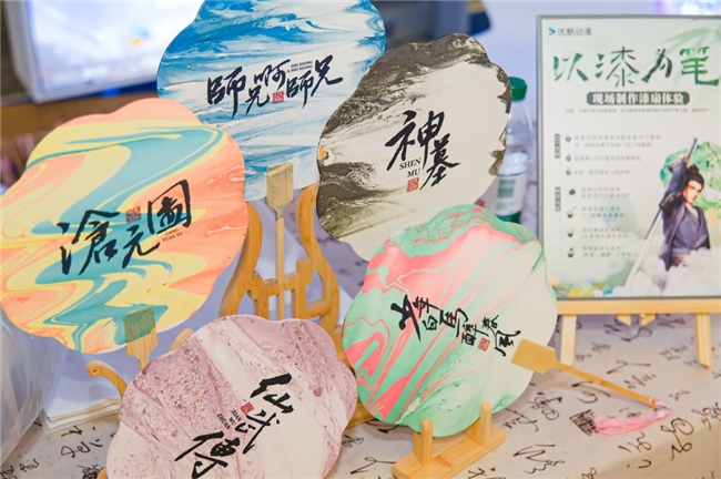 同時(shí),優(yōu)酷動(dòng)漫現場(chǎng)特別增設非遺漆扇制作體驗區,游客可親手制作渲染屬于自己的國風(fēng)扇面。在水中以漆作畫(huà),扇面搖曳旋轉之后,東方美學(xué)的絢麗色彩,便在手中翩翩起舞,也將現場(chǎng)的國風(fēng)氛圍推向高潮。