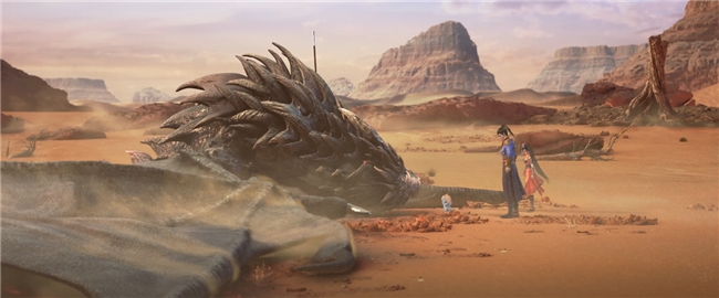 此外,《神墓2》體現的中世紀美學(xué)也是蔚為大觀(guān)。最典型的便是從第一季開(kāi)始便出現的各種神龍巨獸的形象,可謂是風(fēng)姿萬(wàn)千、各有神通,彰顯了中世紀美學(xué)奇幻怪誕的特征。這一季在中世紀美學(xué)的呈現上則是更加細膩豐富,開(kāi)頭便是辰南與楚鈺在浩茫蒼穹里御龍飛翔,楚鈺一句“東褚國大山多奇觀(guān)異象”,視角便轉到浩蕩青冥之下,赤巖嶙峋,大地蒼茫,死亡沙漠,枯樹(shù)怪?zhù)f……一幕幕充斥著(zhù)遠古氣息的場(chǎng)景,盡顯中世紀奇詭神秘、怪異荒誕之感。二人還遇到了兇猛可怖的神魔殘軀,辰南手持后羿神弓,搭箭開(kāi)弩,與怪物巨獸展開(kāi)了一番燃血大戰。神秘蒼茫的遠古場(chǎng)景之下,御龍馳天,與獸血戰,充分彰顯了中世紀奇幻詭譎和熱血戰斗的美學(xué)氣氛。