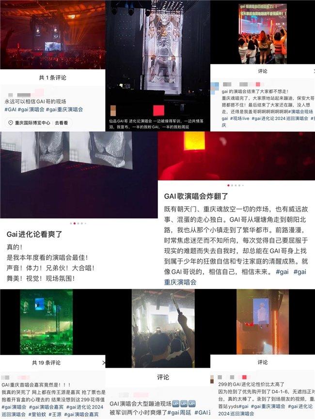8月10日,GAI周延2024世界巡回演唱會(huì )《GAI進(jìn)化論》首站在重慶國際博覽中心火爆開(kāi)演,演唱會(huì )萬(wàn)張門(mén)票秒售罄,GAI周延頂級的音樂(lè )現場(chǎng)眾口皆碑,熱度爆棚斬獲熱搜70余個(gè)。演出當晚還有嘉賓王源、布瑞吉Bridge及奧運冠軍鄭思維、功夫胖KUNGFU-PEN等藝人好友來(lái)到現場(chǎng)助陣支持。四面臺360度視聽(tīng)環(huán)繞打造出完美籠罩感,音樂(lè )作品根據演唱會(huì )高配置進(jìn)行了全新的編排升級,還有高度契合歌曲內涵的舞美設計,充滿(mǎn)藝術(shù)感的聲光電組合。整場(chǎng)秀音樂(lè )性與可看性極強,更濃烈的氛圍,更直接的律動(dòng),酣暢淋漓的體驗貫穿始終,有跟隨節奏燥起來(lái)的熱血釋放,有觸及內心深處的感動(dòng)共鳴,過(guò)山車(chē)式的情緒刺激拉滿(mǎn),歌迷意猶未盡,大贊票價(jià)超值,期待下一站開(kāi)演的呼聲不斷。重慶站后官方宣布了第二站將于9月21日在北京國家體育館舉辦。