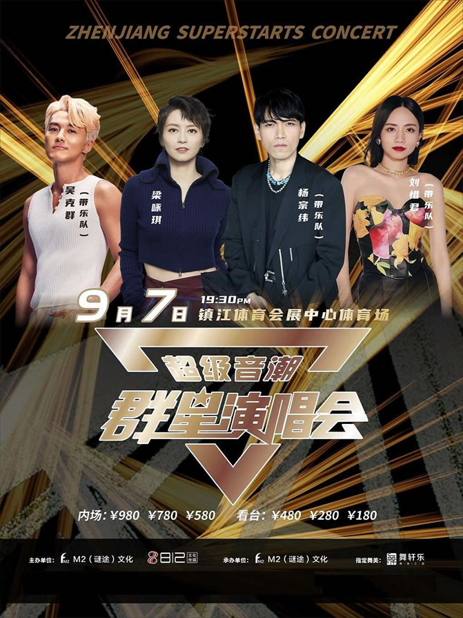 2024 年 9 月 7 日,《超級音潮群星演唱會(huì )》將于鎮江體育會(huì )展中心體育場(chǎng)隆重舉行,讓我們共同期待這四位實(shí)力藝人在此次演唱會(huì )中為大家奉獻一場(chǎng)無(wú)與倫比的音樂(lè )盛宴!