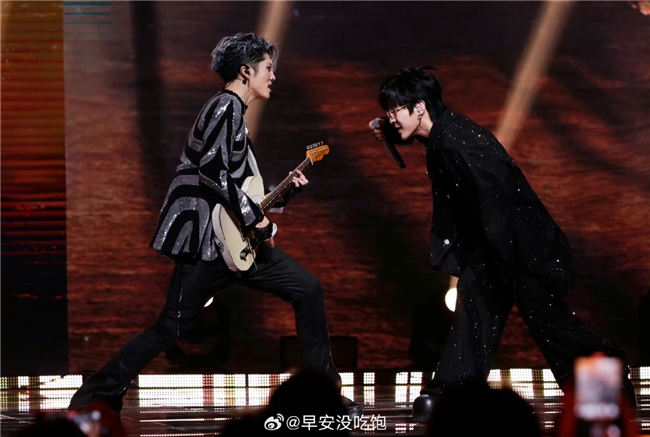 早安和雅MIYAVI從《披荊斬棘》的綜藝舞臺來(lái)到微博音樂(lè )盛典,攜手演唱改編歌曲《Super Star》,在原版的基礎上進(jìn)行新的創(chuàng )作嘗試,穿越時(shí)空的能量與新的時(shí)代感受交錯匯合,雅MIYAVI魅力十足的吉他彈奏搭配早安極具力量感的硬核rap,搖滾與說(shuō)唱在同一場(chǎng)域激情碰撞,火花四濺的舞臺感染力燃炸全場(chǎng)。