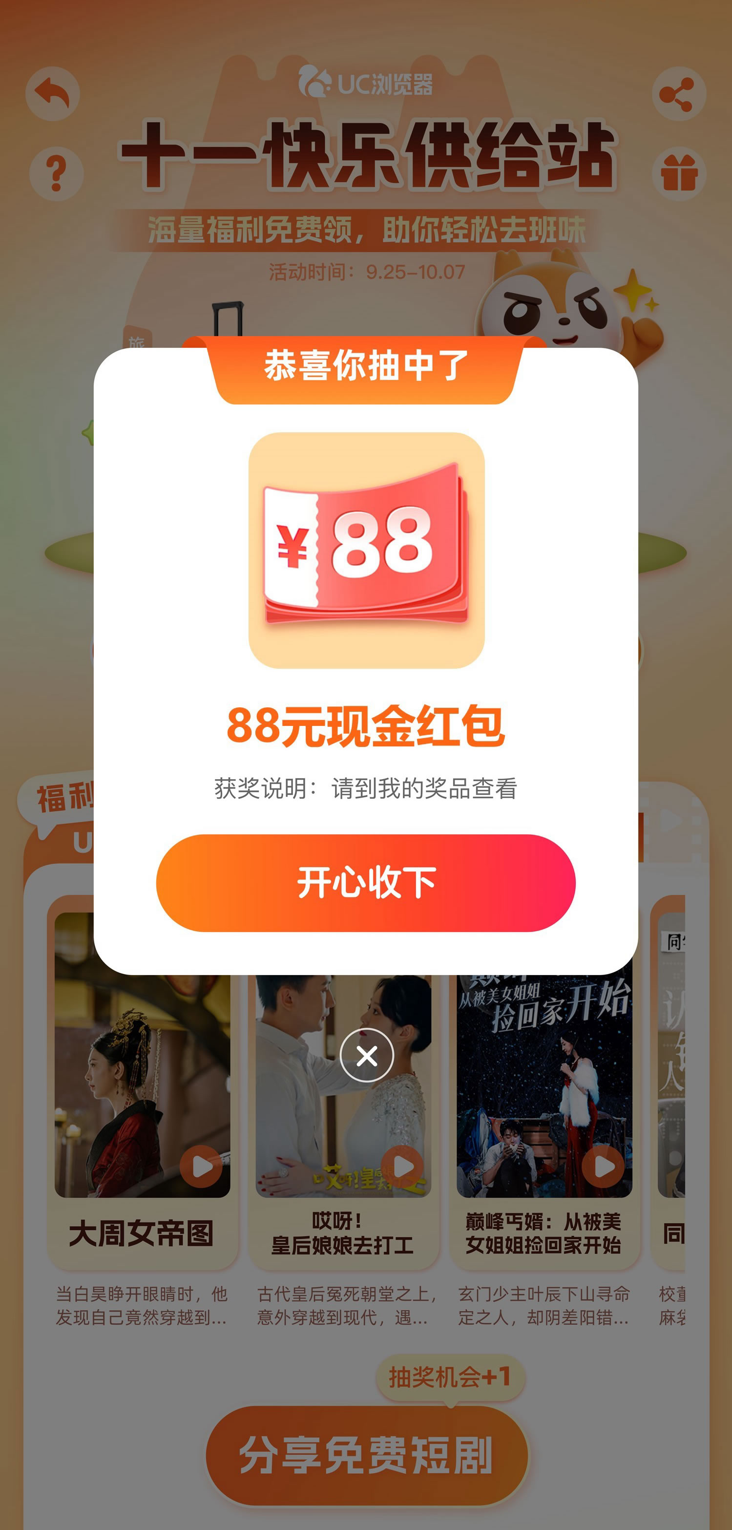 “班味”不光要能測,還要能消除。這個(gè)國慶,UC為用戶(hù)搭建了“十一快樂(lè )供給站”,用海量小說(shuō)、短劇、視頻、網(wǎng)盤(pán)備份等福利充實(shí)用戶(hù)假期。這個(gè)小長(cháng)假不管是出游還是宅家,玩轉十一、告別班味,上UC就夠!