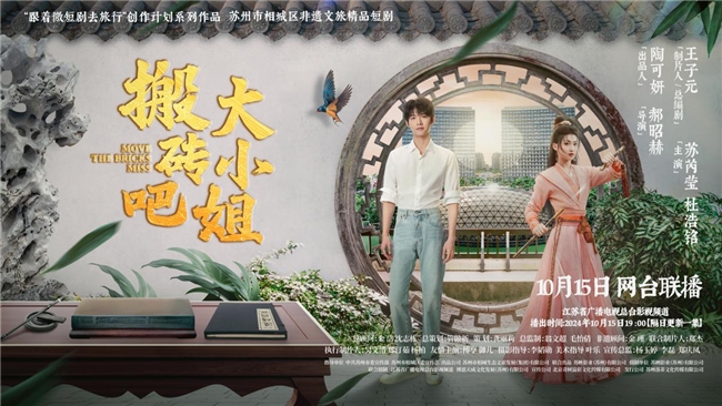 由中共蘇州市委宣傳部、蘇州市相城區委宣傳部指導,蘇州市相城生態(tài)文旅發(fā)展(集團)有限公司出品,蘇映影業(yè)(蘇州)有限公司聯(lián)合出品/攝制,江蘇省廣播電視總臺影視頻道聯(lián)合攝制的蘇州相城首部文旅非遺微短劇《搬磚吧,大小姐!》定檔10月15日甜蜜播出!電視首播平臺為江蘇省廣播電視總臺影視頻道,10月15日19:00起,隔日更新一集,同步登陸學(xué)習強國、抖音、愛(ài)奇藝、優(yōu)酷、騰訊視頻、微信視頻號、B站等全網(wǎng)絡(luò )平臺上線(xiàn),創(chuàng )新實(shí)現微短劇網(wǎng)臺同步聯(lián)播模式。