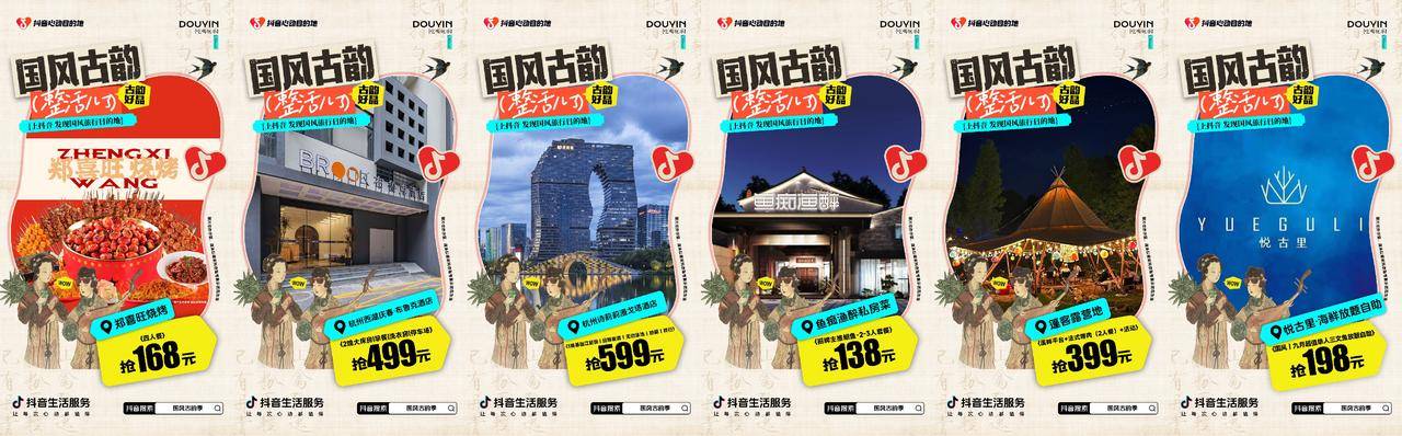 9月6日至9月30日,抖音生活服務(wù)盛大啟幕了一場(chǎng)「心動(dòng)目的地·國風(fēng)古韻季」特別活動(dòng),巧借中秋佳節,攜手眾多明星達人,跨越四大省份、七座城市,共同編織了一場(chǎng)線(xiàn)上線(xiàn)下交相輝映的國風(fēng)盛宴,巧妙地將傳統文化精髓與現代潮流元素融合在一起,打造了一場(chǎng)既新奇又震撼的國風(fēng)盛事。由文旅輻射,最終活動(dòng)話(huà)題曝光量達3億,活動(dòng)線(xiàn)上線(xiàn)下總曝光3.5億,交易量整體達成5.5億。