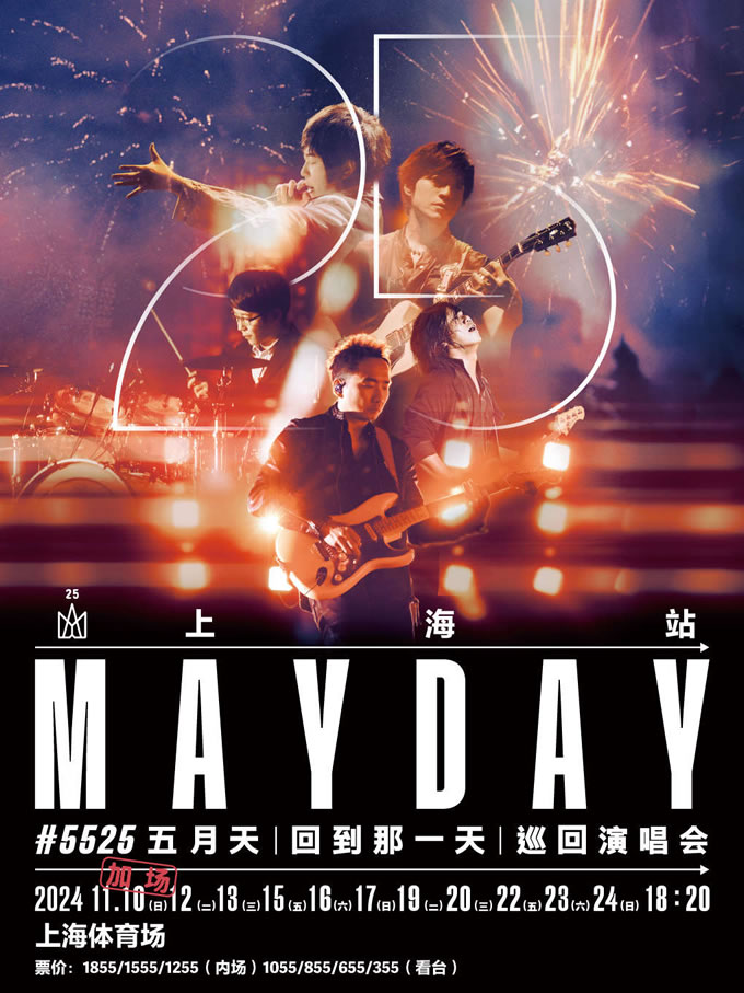 有你的每一天,天天都是五月天!無(wú)論什么都不能阻擋上海與五月天的重聚!CMC Live與相信音樂(lè )共同宣布五月天于2024年11月12、13、15、16、17、19、20、22、23、24日,10場(chǎng)盛舉帶來(lái)新主題世界巡演「MAYDAY #5525 LIVE TOUR 五月天 [ 回到那一天 ] 25周年巡回演唱會(huì )」,于上海體育場(chǎng),搭乘5525時(shí)光機,有你有我回到那一天。炫彩環(huán)繞天幕搭配金秋星空,精致舞美,共同筑起無(wú)限絕美五月天音樂(lè )時(shí)光旅程。