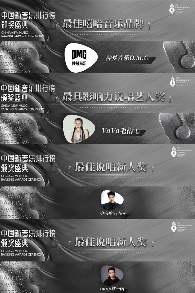11月28日-12月1日,MUSIC P.I.E-2024杭州國際音樂(lè )·演藝產(chǎn)業(yè)博覽會(huì )在杭州蕭山舉辦,種夢(mèng)音樂(lè )D.M.G受邀參加本次展覽會(huì ),并在由國家音樂(lè )產(chǎn)業(yè)基地聯(lián)盟主辦的2024中國新音樂(lè )排行榜頒獎盛典中斬獲四項行業(yè)大獎,種夢(mèng)音樂(lè )D.M.G 獲“最佳嘻哈音樂(lè )品牌”獎,種夢(mèng)音樂(lè )D.M.G旗下藝人VaVa毛衍七獲“最具影響力說(shuō)唱藝人獎”,史宗倫Xyber、hanji林一函獲“最佳說(shuō)唱新人獎”。