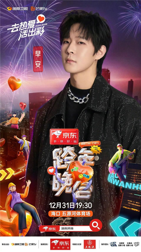 2024年12月31日,《2024-2025年湖南衛視芒果TV跨年晚會(huì )》,綜藝《披荊斬棘》中大放異彩的兩位哥哥早安與王耀慶合作舞臺《嘿!福!放(HAVE FUN)》,在輕松、快樂(lè )、熱情、活力的音樂(lè )節奏中,表達陽(yáng)光自信、積極向上的人生態(tài)度,點(diǎn)燃新年的熱烈氣氛。
