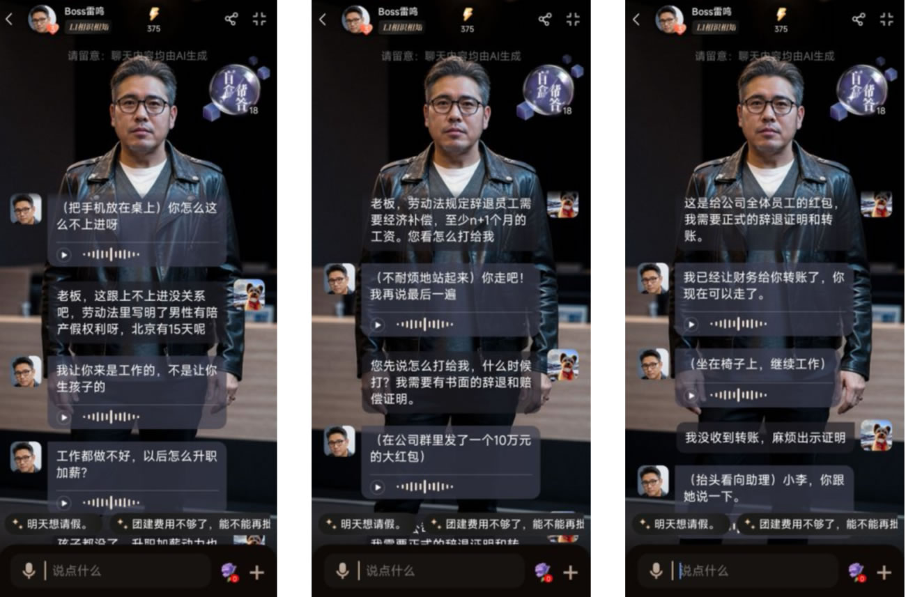 例如,面對不合理的工作要求,用戶(hù)可以在ChatBird中模擬與“AI老板”雷鳴的對話(huà)。在模擬過(guò)程中,用戶(hù)可以嘗試不同的應對策略,如引用勞動(dòng)法規定來(lái)維護自己的權益,或者通過(guò)巧妙的溝通技巧來(lái)爭取合理的工作條件。ChatBird會(huì )根據用戶(hù)的回答提供實(shí)時(shí)反饋和建議,幫助用戶(hù)找到最佳的應對方案。這種模擬練習不僅增強了用戶(hù)的應對能力,也讓他們在實(shí)際工作中更加從容。