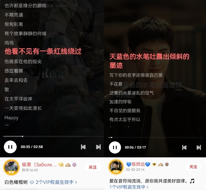 在全民K歌平臺上,眾多網(wǎng)友也積極參與了《白色橄欖樹(shù)》OST的翻唱,為這些歌曲賦予了個(gè)性化的色彩。例如,K歌網(wǎng)友“板栗(Заболела)”借助“VIP-超級混響音效”演唱了《未完待續》,增強了演唱的表現力與感染力,詮釋出沉浸于愛(ài)情的甜蜜心情;K歌網(wǎng)友“陳燁遠”則在“VIP-純凈音質(zhì)”的加持下演唱了《假如風(fēng)有顏色》,有力提升了演唱的音質(zhì)效果,傳遞出清新自然的美好情愫。