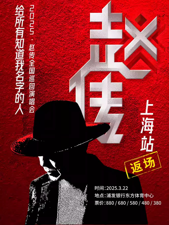 出道三十多年,趙傳依舊保持對音樂(lè )的熱愛(ài),在紅塵中唱盡人間冷暖、鼓勵歌迷們溫柔面對生活。2025年趙傳《給所有知道我名字的人》巡回演唱會(huì )全新出發(fā),歌單升級,全新編曲,他將用獨特的音樂(lè )風(fēng)格和精湛的唱功,為歌迷帶來(lái)一場(chǎng)場(chǎng)震撼心靈的視聽(tīng)盛宴,更多驚喜,拭目以待!