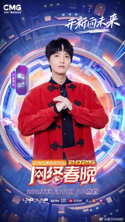 1月22日小年夜,威爾Will.T亮相《2025央視網(wǎng)絡(luò )春晚》開(kāi)場(chǎng)秀,與眾多明星嘉賓合作演唱充滿(mǎn)青春元氣的歌曲《開(kāi)新往前飛》,唱出年輕一代的熱情活力與開(kāi)拓創(chuàng )新的精神面貌,節目在CCTV-1、CCTV-3、央視新聞、央視網(wǎng)、央視頻均有播出。