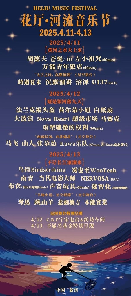 這個(gè)春天,逃離都市的規矩方圓!4月11日至13日,2025花廳·河流音樂(lè )節即將炸響馬陵山——本次音樂(lè )節陣容堪稱(chēng)神仙打架。既有引領(lǐng)潮流的先鋒音樂(lè )人,又有備受歡迎的實(shí)力偶像。他們將輪番登臺進(jìn)行三天三夜的狂歡、山野露營(yíng)+落日派對,帶你體驗「躺平聽(tīng)搖滾,抬頭見(jiàn)星河」的終極浪漫!
