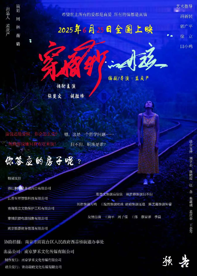 《穿婚紗的女孩》是由南京夢(mèng)禾文化傳媒有限公司出品,青年作家孟慶嚴編劇導演,張楚文、胡勝鋒、劉勝、王煊然、胡毅、陳藝嘉、王海平主演。該片于2025年6月25日全國上映。