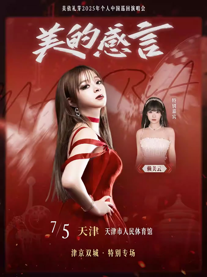 2024年6月15日美依禮芽 MARiA“美的感言”特別專(zhuān)場(chǎng)演唱會(huì )上海站圓滿(mǎn)成功,小美為喜歡她的中國歌迷帶獻上了版誠意滿(mǎn)滿(mǎn)的歌單,收獲了眾多掌聲與叫好聲。2025年7月5-6日,讓我們共同期待小美在津京雙城個(gè)人特別專(zhuān)場(chǎng)演唱會(huì ),帶來(lái)什么不一樣的驚喜,悄悄劇透:雙城特別專(zhuān)場(chǎng)將有【入場(chǎng)驚喜禮包】和【神秘福利】。