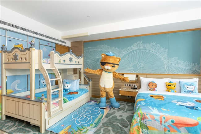 新推出的“海底小縱隊主題房”,以熱門(mén)動(dòng)畫(huà)片《海底小縱隊》為藍本,結合動(dòng)畫(huà)人物IP形象及海洋元素,設計了多種房型,為親子家庭打造了一個(gè)充滿(mǎn)童趣與探險氛圍的親子空間。