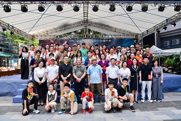 在現場(chǎng)揭幕環(huán)節,廣西廣播電視局網(wǎng)絡(luò )處韋澤華、黃大文老師、黃大年生前好友司志剛老師、廣西高禮實(shí)業(yè)集團董事長(cháng)歐陽(yáng)高禮、廣西雋逸文旅發(fā)展有限公司董事長(cháng)巫琦、南寧市融媒體中心副主任張婷、廣西廣播電視臺交通廣播副主任黃莉華、總導演陳雷等八位嘉賓共同登臺,啟動(dòng)攝影機,宣告影片正式進(jìn)入拍攝階段。