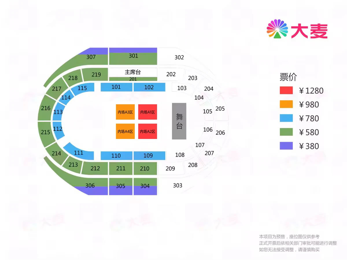 票價(jià):380元、580元、780元、980元、1280元