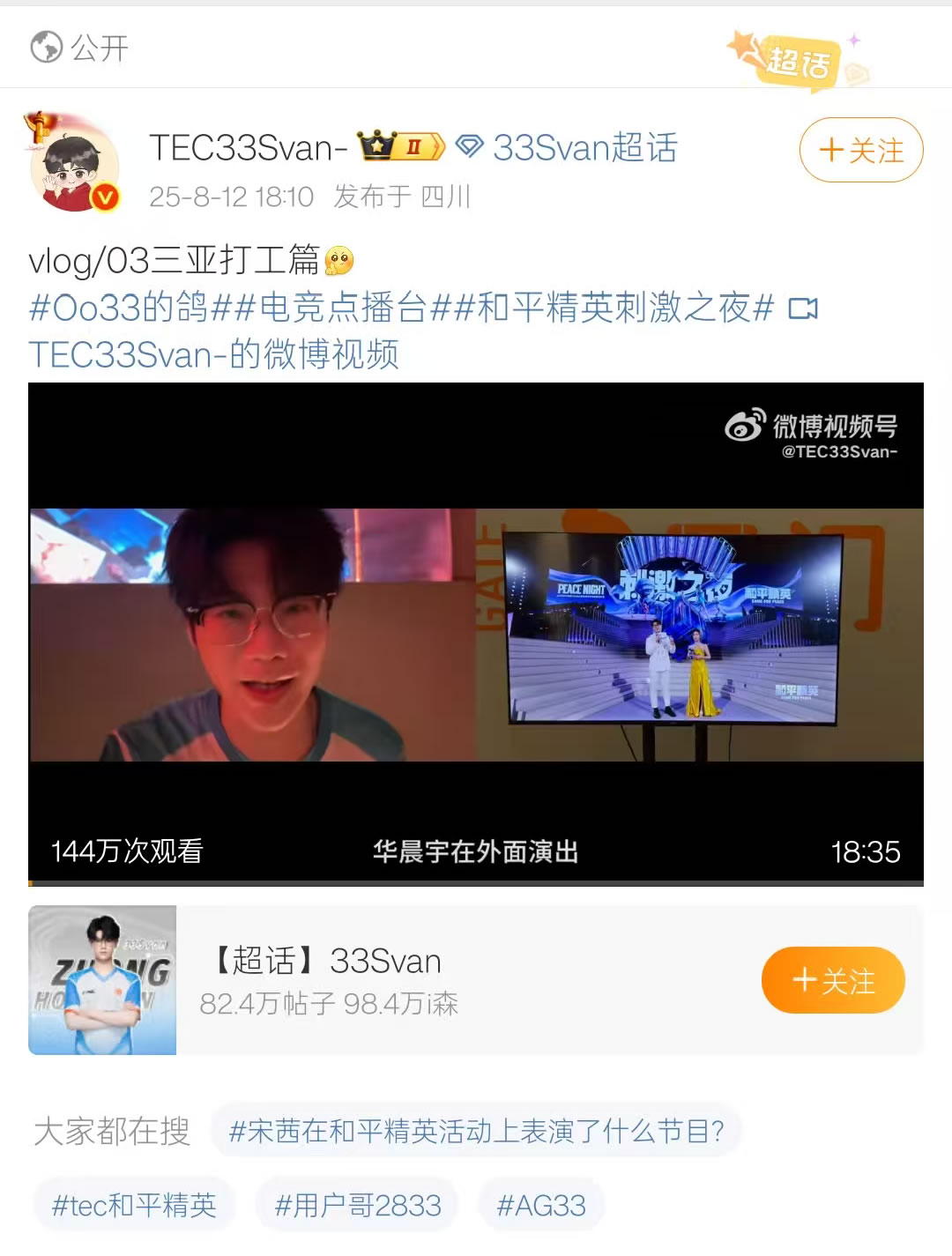 平臺ACG生態(tài)厚土,驅動(dòng)UGC裂變:微博作為國內最大的游戲、電競、動(dòng)漫社交陣地之一,聚集了超3.2億泛二次元用戶(hù),與《和平精英》游戲受眾高度重合。同時(shí),平臺內熱門(mén)電競賽事IP微博入駐率為100%,熱門(mén)戰隊選手、頭部聲優(yōu)、coser的微博入駐率均達99%,這一龐大的創(chuàng )作者生態(tài)與核心玩家社群,成為活動(dòng)聲浪持續發(fā)酵的關(guān)鍵。