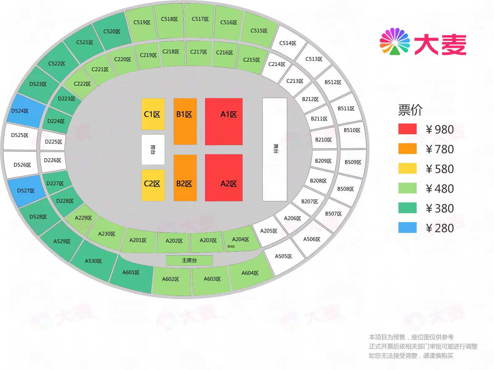 票價(jià):280元、380元、480元、580元、780元、980元