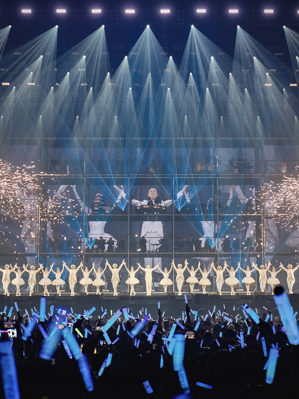作為韓國標志性的室內演出場(chǎng)館,迎仕柏綜藝館憑借其多功能空間和靈活的舞臺設計,為每一場(chǎng)表演的創(chuàng )意提供了卓越的硬件支持。場(chǎng)館內配備世界一流的音響系統和專(zhuān)業(yè)的演出制作技術(shù),更為現場(chǎng)演出注入震撼人心的藝術(shù)觀(guān)感。此次巡演還特別采用53人編制的大型樂(lè )隊以及20人芭蕾舞團的豪華陣容,結合迎仕柏綜藝館先進(jìn)的聲光技術(shù)和無(wú)遮擋的座位布局讓觀(guān)眾心無(wú)旁騖地徜徉于這場(chǎng)視聽(tīng)盛宴中。