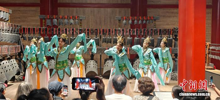 中新網(wǎng)北京10月5日電(記者 徐婧)10月4日至6日,大鐘寺古鐘博物館推出“博物館中邀明月·大鐘寺里共此時(shí)——憑欄宮闕宴中秋”主題文化活動(dòng);顒(dòng)融入古風(fēng)演藝、漢服妝造、鳴鐘祈福等內容,首次推出“日場(chǎng)+夜場(chǎng)”模式,滿(mǎn)足不同時(shí)段參觀(guān)觀(guān)眾體驗需求。