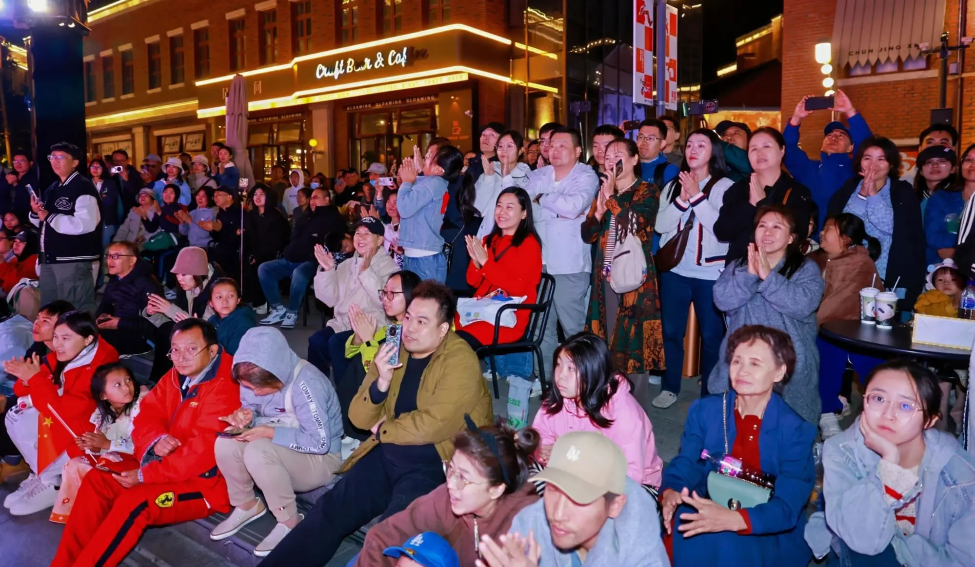 現場(chǎng)不僅有舞蹈盛宴,晚會(huì )的歌曲串燒更戳中“情感點(diǎn)”!洞猴L(fēng)十萬(wàn)里》的清新明快唱出春日生機,《我們在長(cháng)春相遇》的溫柔旋律則滿(mǎn)是家鄉告白,歌聲裹著(zhù)暖意飄向夜空。當全體演員再次登場(chǎng),歌舞交織間,一幅“國泰民安、萬(wàn)家燈火”的盛世畫(huà)卷徐徐展開(kāi)——臺上星光璀璨,演員們用盡全力傳遞溫情;臺下閃光燈與月光交輝,觀(guān)眾舉著(zhù)手機記錄瞬間,掌聲、歡呼聲不時(shí)與歌聲相融,將思鄉情、家國夢(mèng)緊緊裹在一起。
