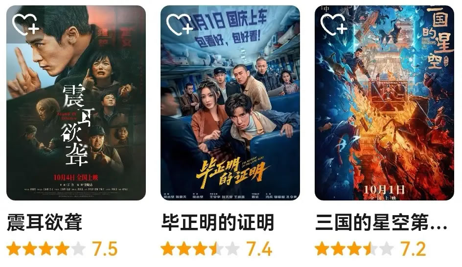 《震耳欲聾》豆瓣7.5分,《畢正明的證明》豆瓣7.4分,是今年國慶檔口碑最好的兩部。