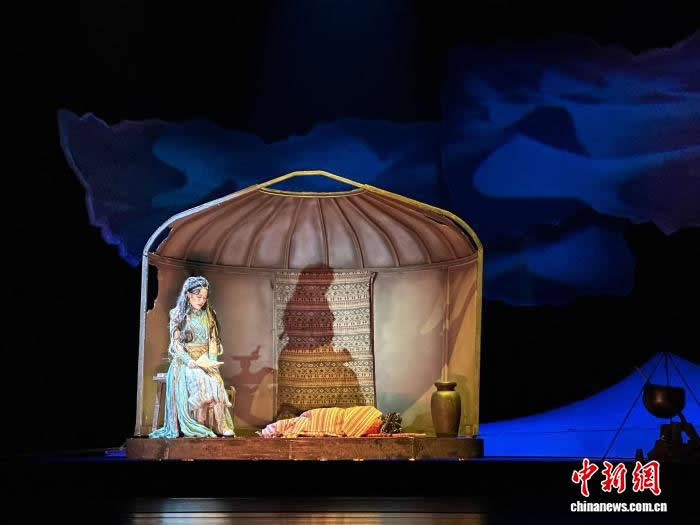 10月9日晚,甘肅蘭州,原創(chuàng )音樂(lè )劇《米薇的敦煌》劇照。中新社記者 閆姣 攝