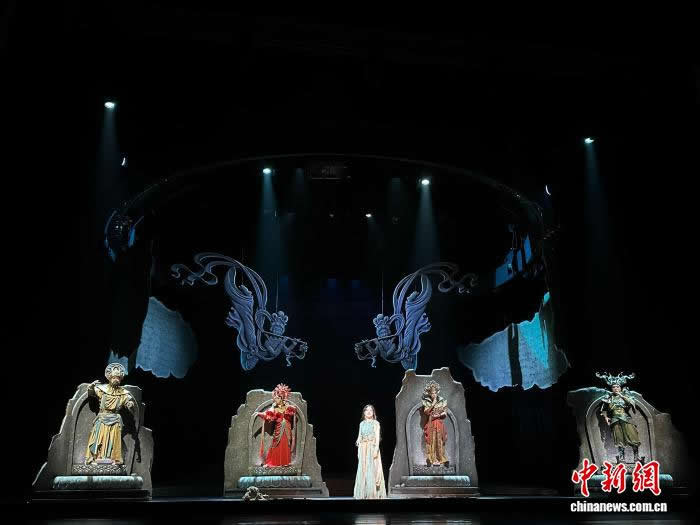 10月9日晚,大型原創(chuàng )音樂(lè )劇《米薇的敦煌》在甘肅蘭州首演。中新社記者 閆姣 攝