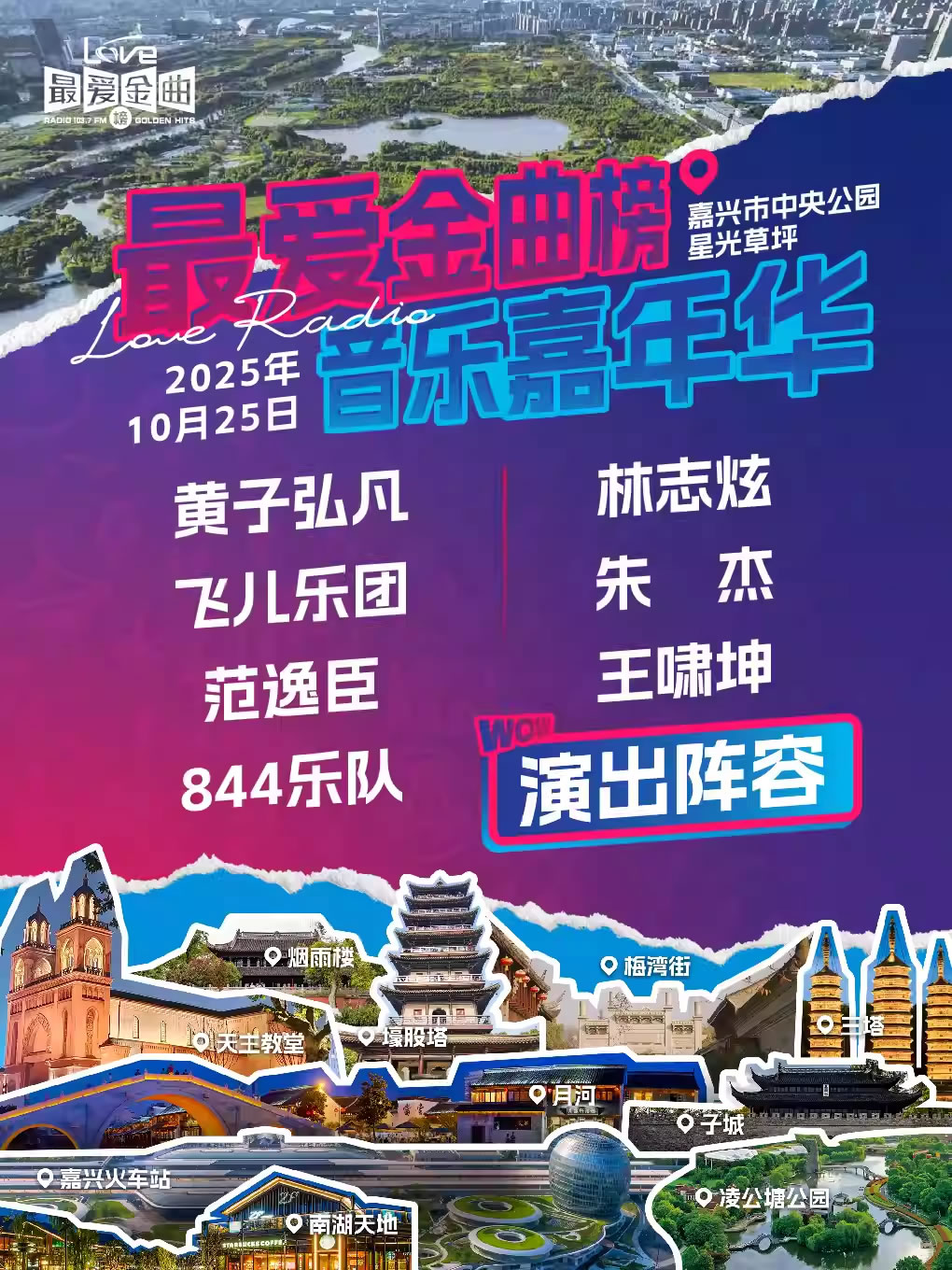 這場(chǎng)由嘉興產(chǎn)業(yè)集團和上海人民廣播電臺、SMG互聯(lián)網(wǎng)節目中心聯(lián)合主辦的最?lèi)?ài)金曲榜音樂(lè )嘉年華,將于10月25日在嘉興中央公園的星光草坪盛大啟幕。